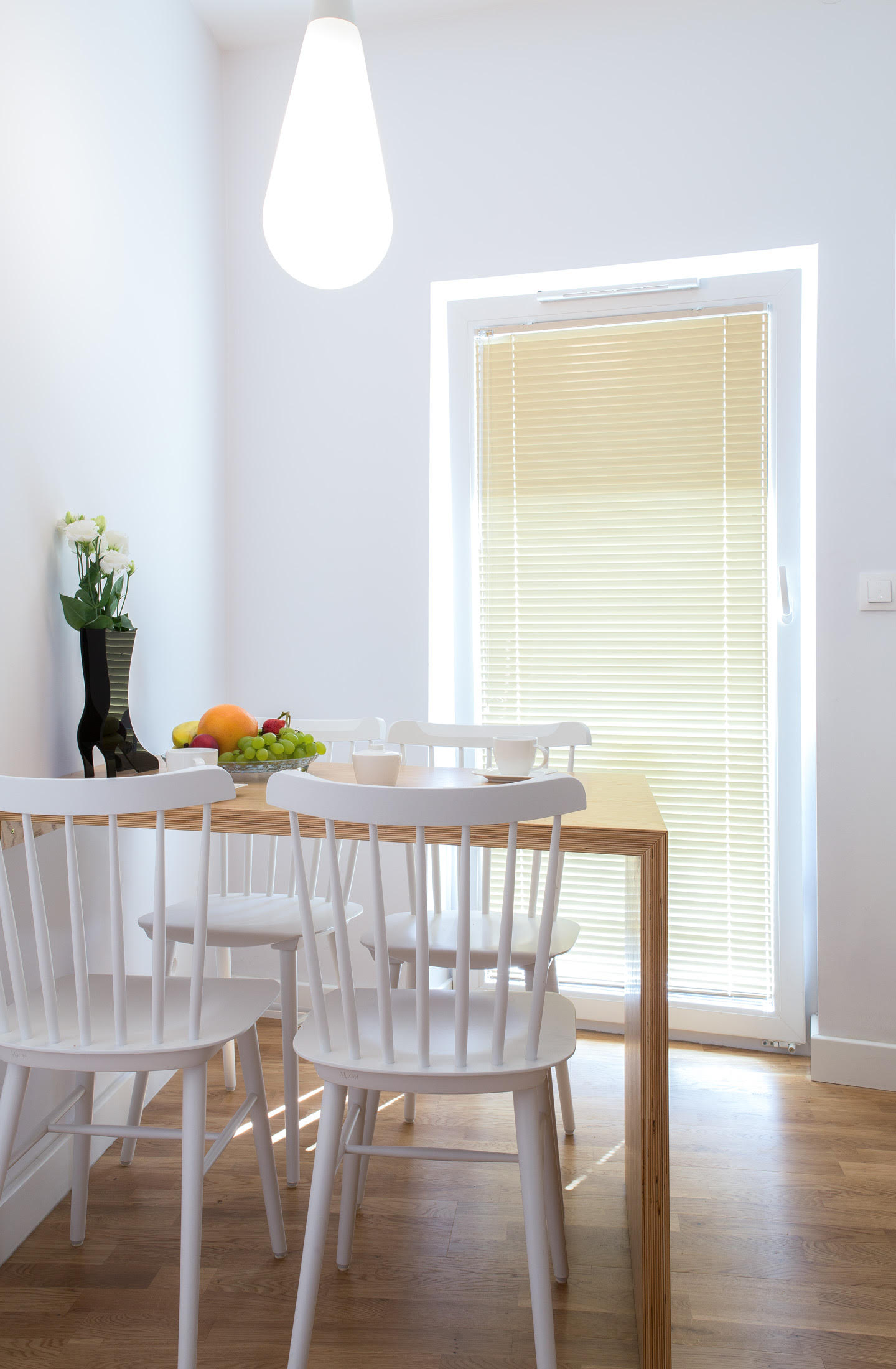 Kuchnia wyposażona jest w stół z krzesłami, płytę indukcyjną, lodówkę, zmywarkę, piekarnik, toster oraz ekspres do kawy. Do dyspozycji Gości zastawa stołowa, sztućce, garnki, patelnia, naczynia i przybory kuchenne.